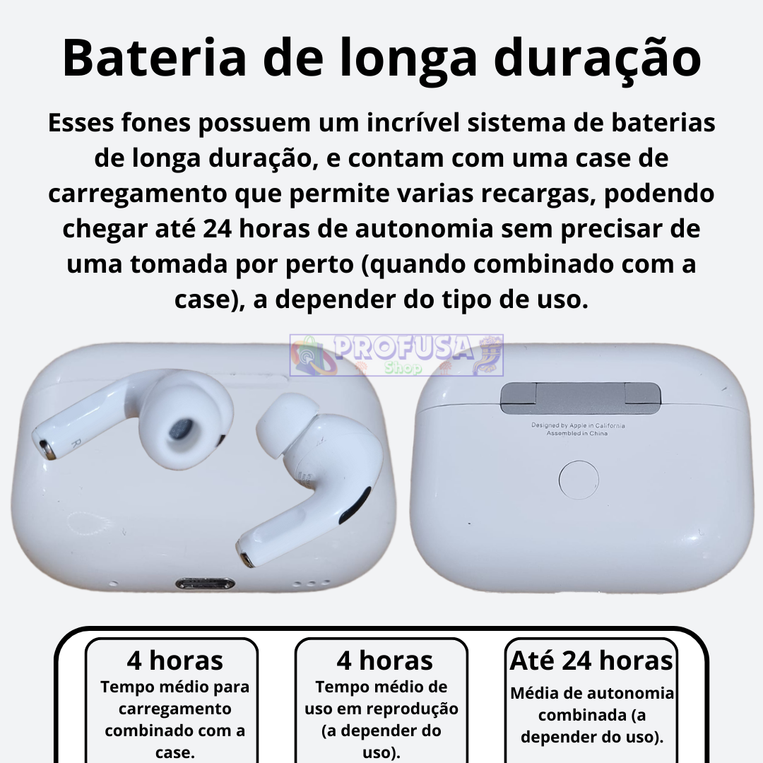 Bateria de longa duração (até 4 horas aprox. dependendo do uso) e até 24 horas de uso total combinando a utilização do estojo de carregamento (dependendo do uso)